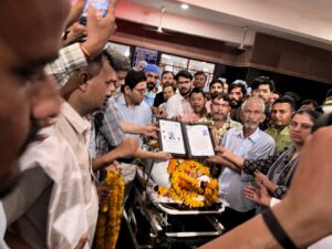 ”एम्बुलैंस भी सजाई एवं जगह-विभिन्न सामाजिक संगठनों ने पुष्प वर्षा से किया स्वागत”